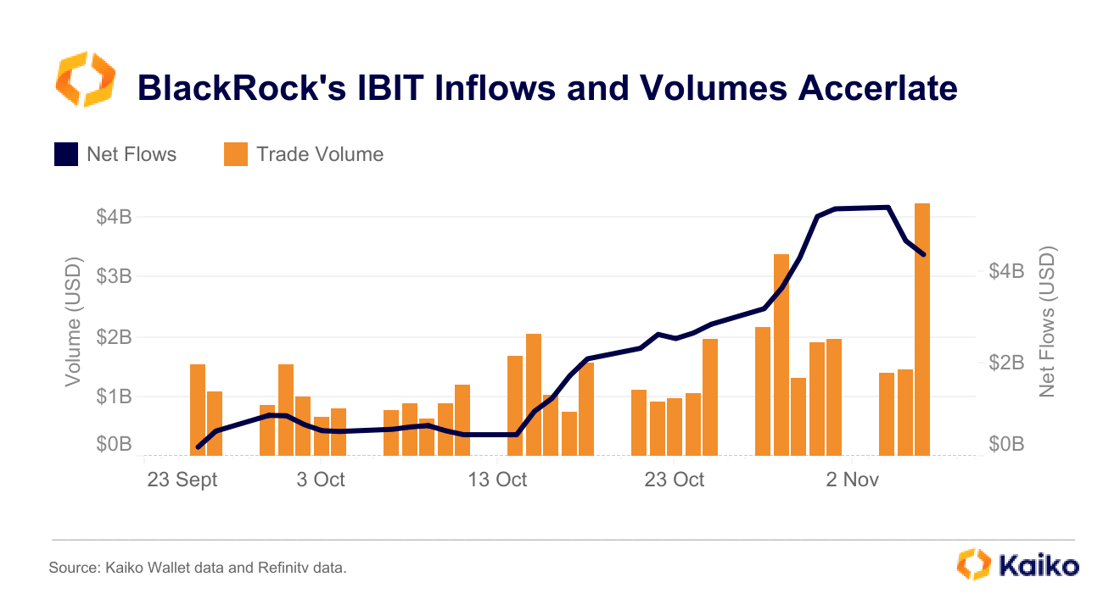 Exchange-traded fund issuers have been major beneficiaries of BTC's recent price surge. This week, spot BTC ETFs set new records for inflows and trade volume.